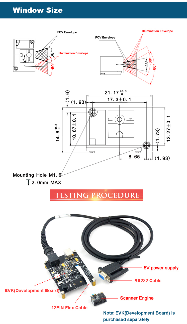 1D 2D Mini Barcode Scanner Module TTL232 USB RS232 752×480 CMOS Red LED 625nm Images |